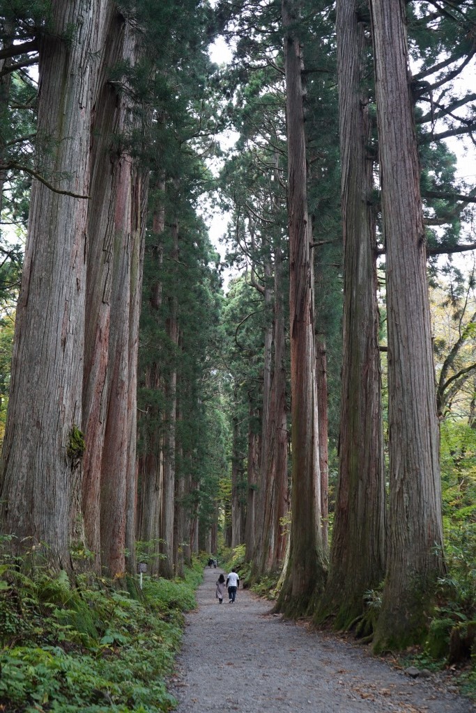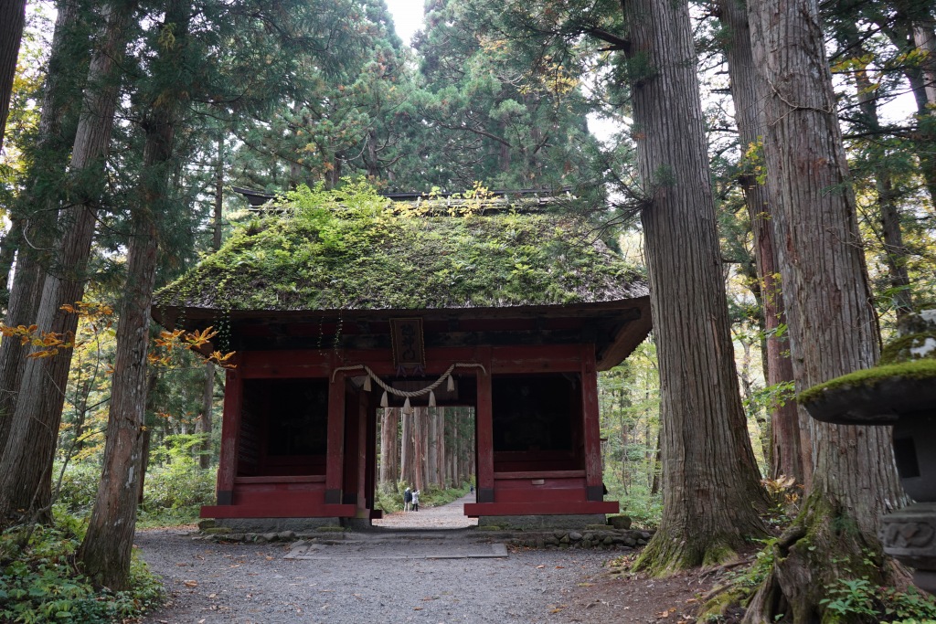 駐車場から本殿まで杉並木を40分ほど歩くんだけど、真ん中あたりにある「随神門」