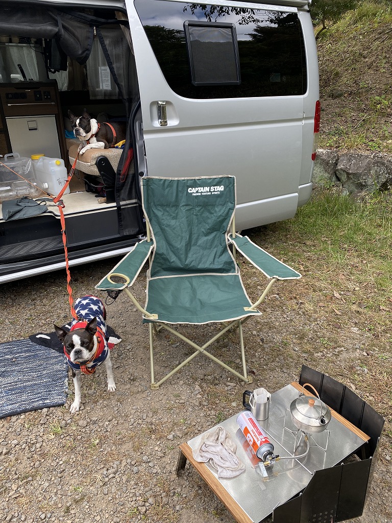 賞味期限切れのワンタンメンを食べて(処分して?)コーヒーを飲み、ワンコと河原を散歩。
