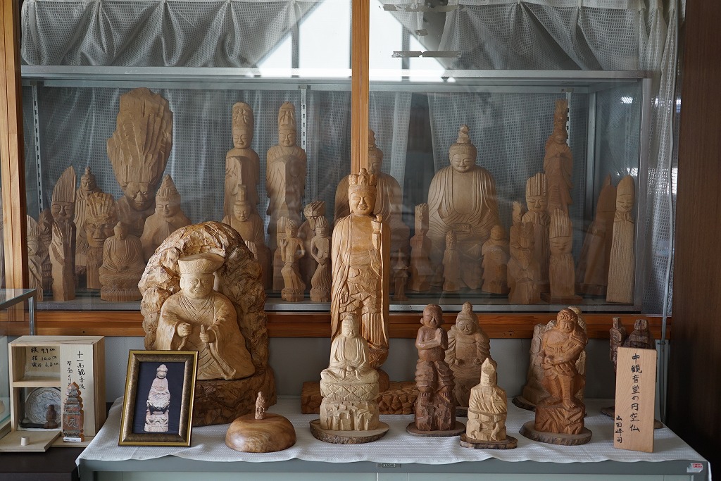 円空仏を彫る教室が月1回開催されていて、素人の彫った円空仏を並べているようです。