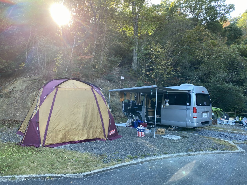 歩いてすぐに温泉に入れるキャンプ場(お風呂は1日600円)。